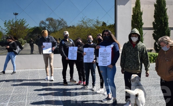 Los empleados se manifestaron frente a la casa de juego. "Estamos atravesando una situación realmente muy difícil", dijeron.