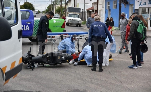 Poco antes de las 17 se produjo un accidente en Buchardo y Celestino Muñoz. El conductor de la moto debió ser trasladado al Hospital.