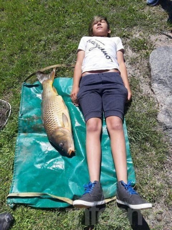 Un niño de 11 años pescó una carpa gigante en la Cantera Negra de Sierra Chica. La captura del pez de más de 9 kilos la realizó con masa Yarará, contó tras la hazaña a Infoeme.
