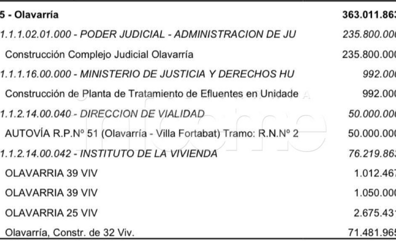 Una de las principales obras, que ya se había anunciado, es la la construcción del Complejo Judicial Olavarría para lo cual se destinará unos 235 millones de pesos. Además se destinarán $992.000 para la construcción de Planta de Tratamiento de Efluentes.