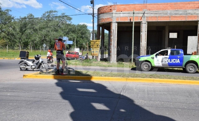 Poco antes de las 16 se produjo un choque entre una moto y una bicicleta. Si bien el impacto no fue fuerte, el conductor del ciclomotor marca Yamaha debió ser trasladado al Hospital Municipal por un agudo dolor en su espalda provocado por la caída.