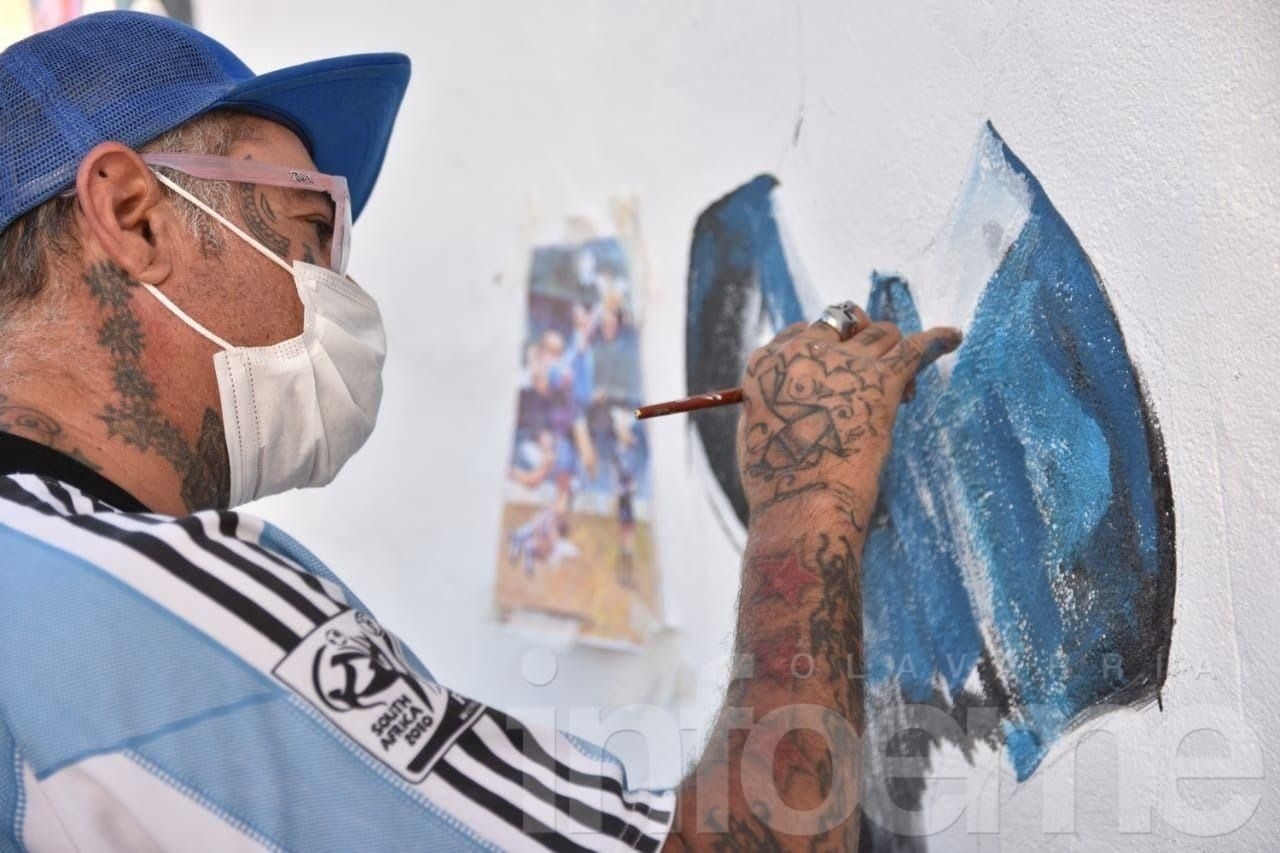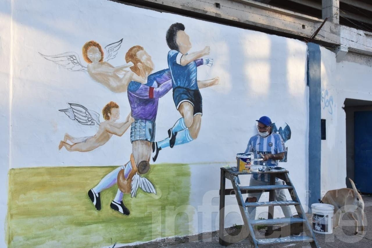Luego, decidieron pintar a Diego, ayudado por los ángeles para frenar al arquero inglés Peter Shilton, en la mítica jugada de la “Mano de Dios”. Vendieron rifas para poder comprar la pintura y la semana anterior comenzaron con el mural maradoniano.
