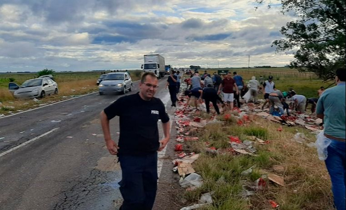Por su parte, el conductor oriundo Guaminí favorablemente no sufrió lesiones físicas, pero sí la pérdida de la mercadería que transportaba. Mientras los vecinos realizaban el saqueo, se encargó de tomar las fotografías necesarias para los trámites que deberá realizar en el seguro.