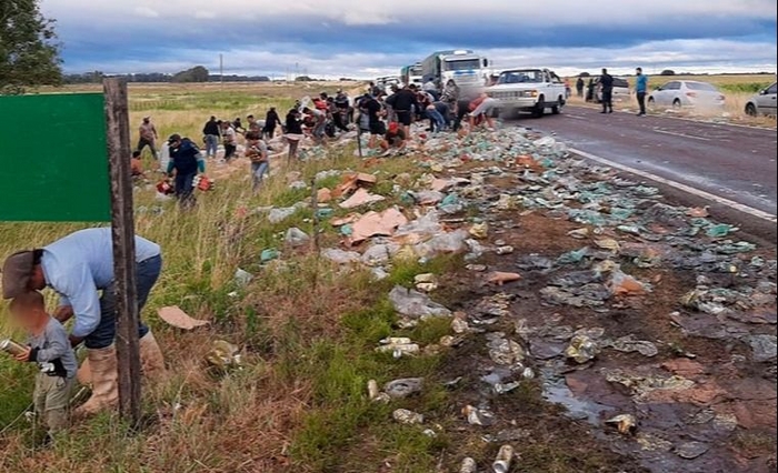 Durante la tarde del miércoles, un camión que trasladaba cervezas realizó una maniobra brusca sobre la Ruta 65 en el trayecto que une a Bolívar con 9 de Julio. Allí perdió su carga y los vecinos aprovecharon para llevarse la cerveza gratis a sus casas, de acuerdo a lo informado por el diario bolivarense La Mañana.