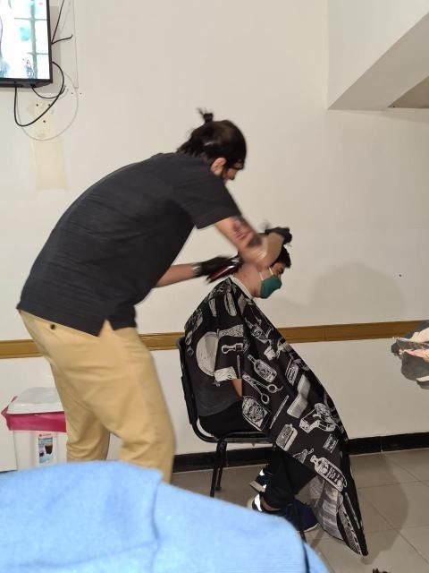 Fran Ocaña, de la peluquería "Nené", les cortó el pelo a Agustina y Franco anoche, antes de la operación de la joven prevista para este viernes en el Hospital Municipal. "Mi novio decidió raparse también como sinónimo de empatía. Es mi compañero número uno", contó Agustina al borde las lágrimas.