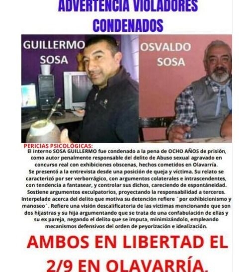 La inminente liberación de Guillermo Sosa y Osvaldo Sosa genera temor en Olavarría. "Los pedófilos serán liberados luego de ocho años de sentencia firme y van a volver a violar", advirtieron las víctimas.