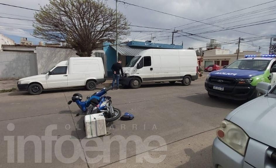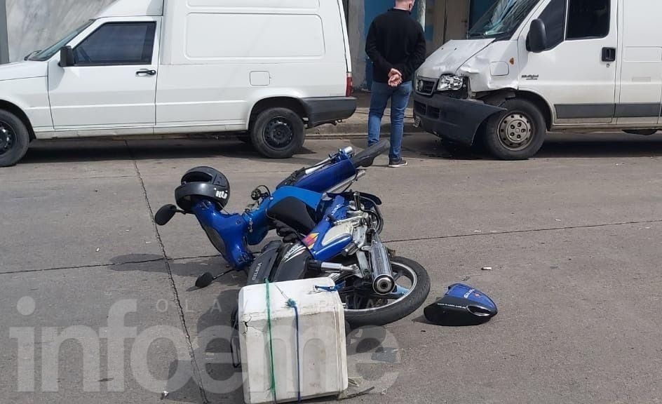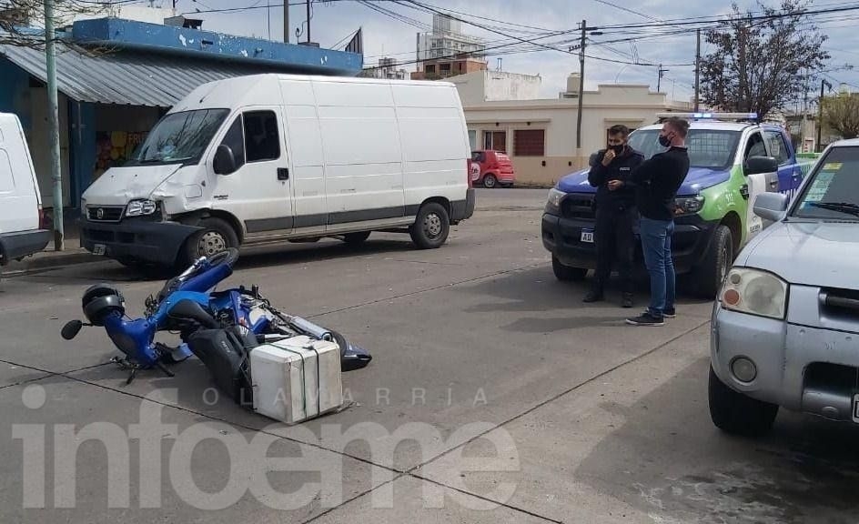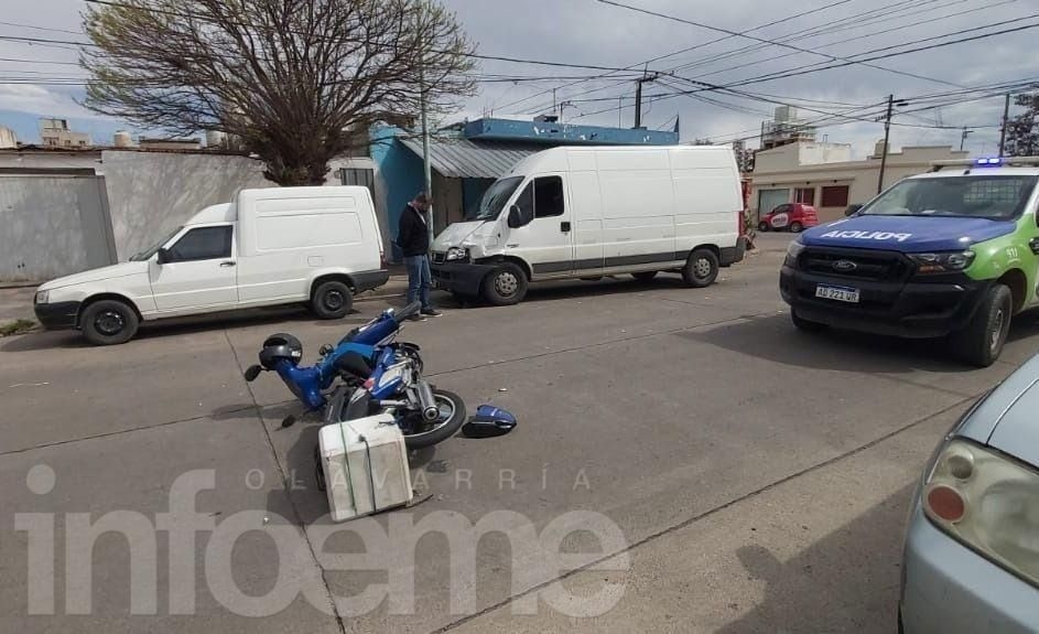 Un motociclista resultó herido este viernes y fue trasladado de urgencia al hospital municipal tras chocar con una combi en Lamadrid y Roque Saenz Peña.